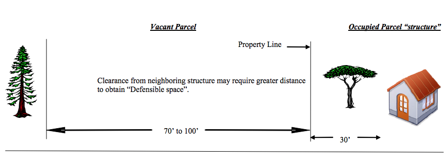 100’ clearance along property lines adjacent to parcels with structures and/or from neighboring structures